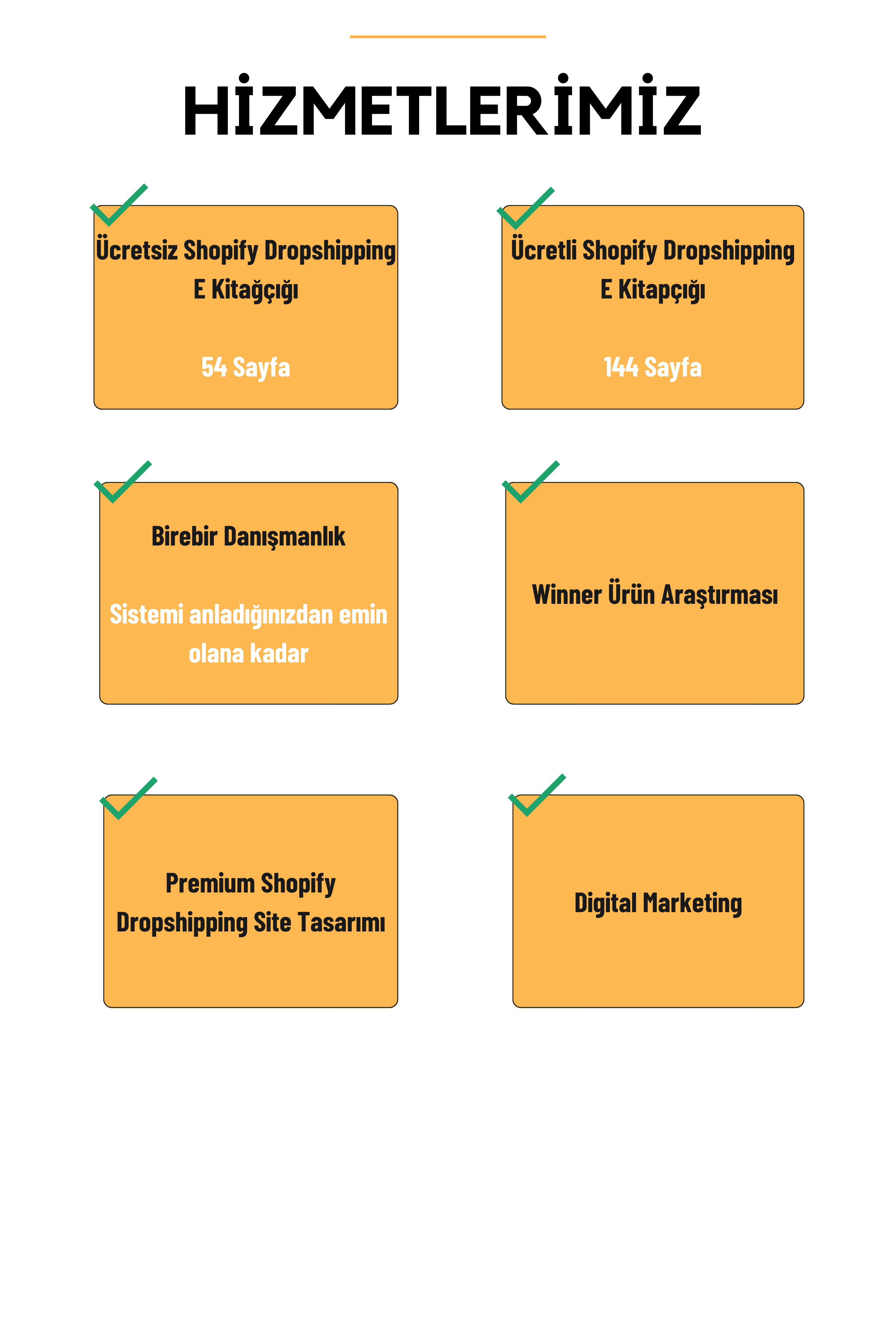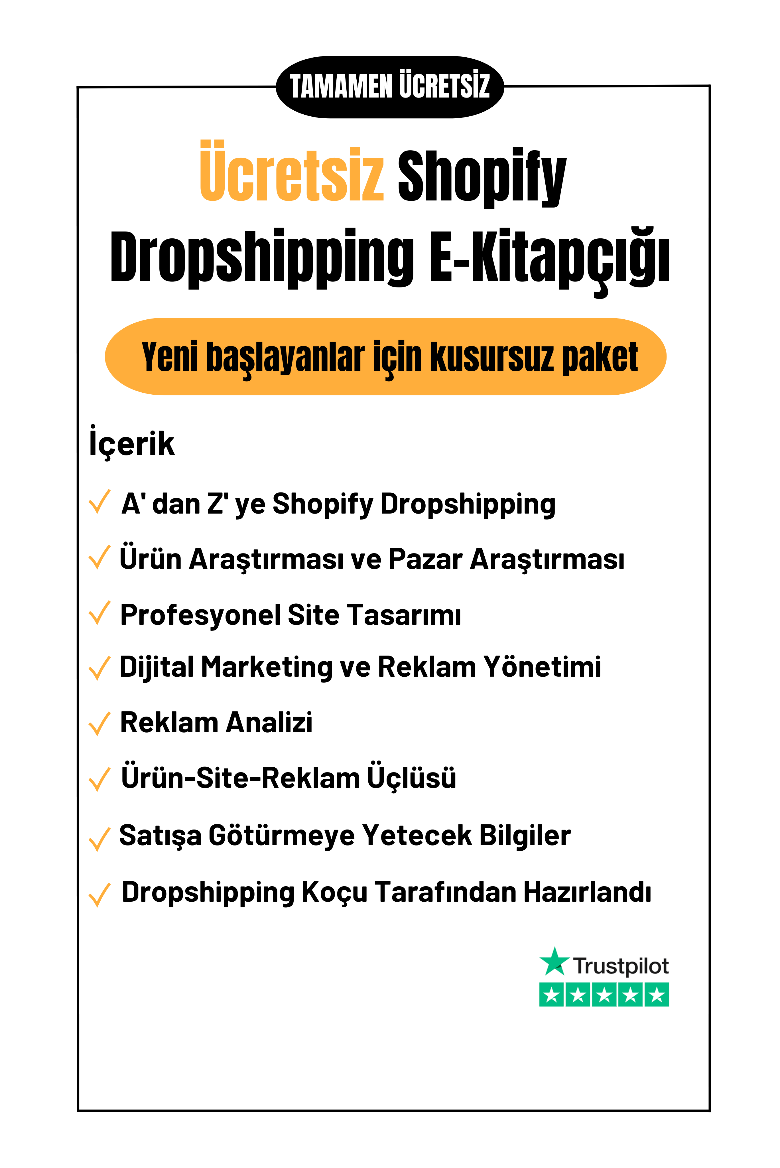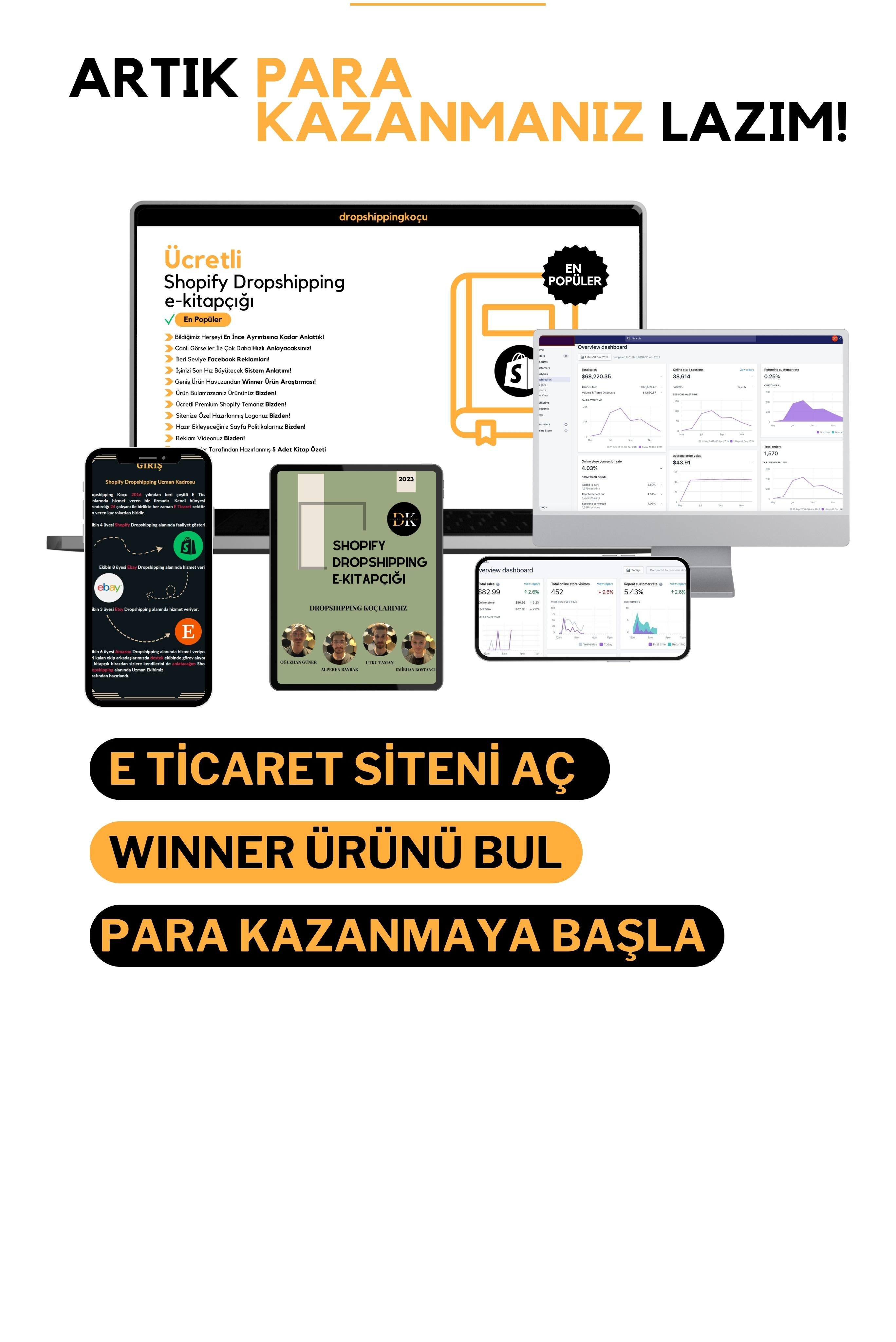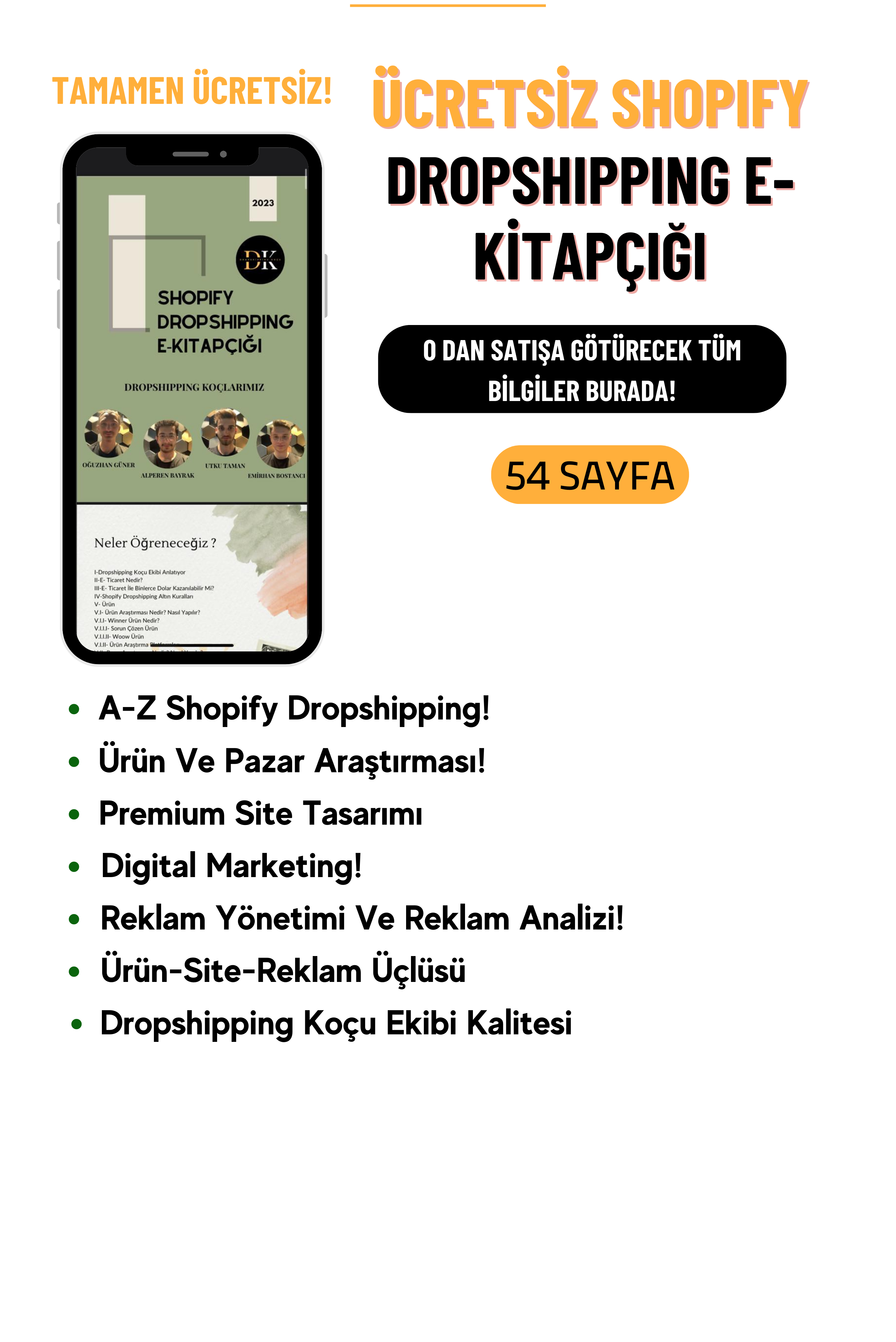 Dropshipping Koçu Shopify Dropshipping de sizi ileriye taşıyacak 3 adet plana sahip. Ücretsiz Shopify Dropshipping E-Kitapçığı bunlardan ilki ve bu işe başlamak isteyen tüm herkes ücretsiz bir şekilde sahip olabilir. İkinci plan ise Ücretli Shopify Dropshipping E-Kitapçığı bu kitapçık Shopify da bildiğimiz herşeyi anlattığımız bir kitapçıktır. İçerisinde birçok hediyesi ile birlikte size E-Ticaretin yanında hayatınızı da değiştirecek bilgiler sunuyor. Üçüncü planımız ise Birebir Danışmanlık bu plan da direkt olarak Dropshipping Koçu ile özel,birebir ve canlı görüşmeler yaparak ilerleyeceğimiz bir plan. Size bildiğimiz herşeyi öğreteceğiz.