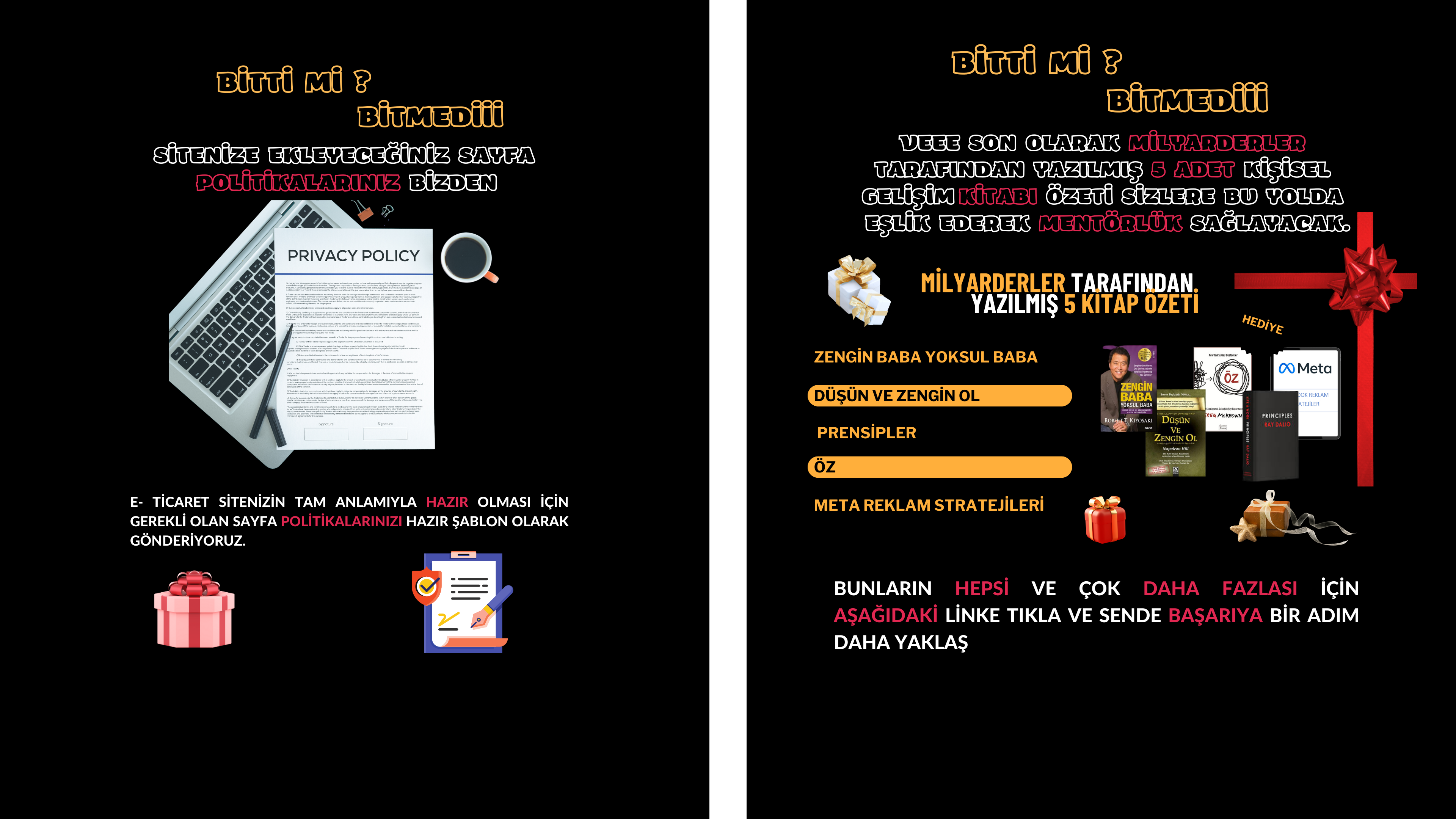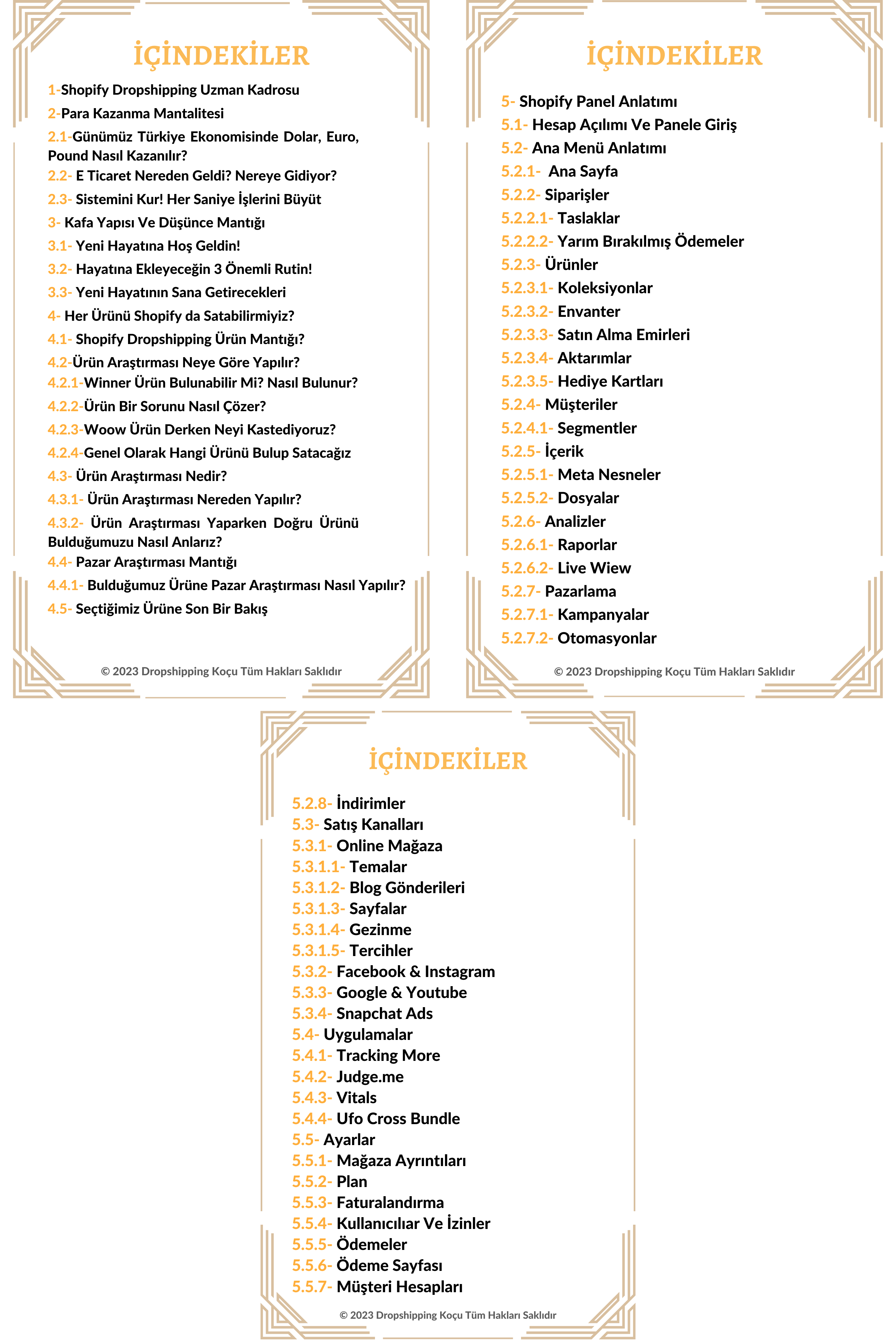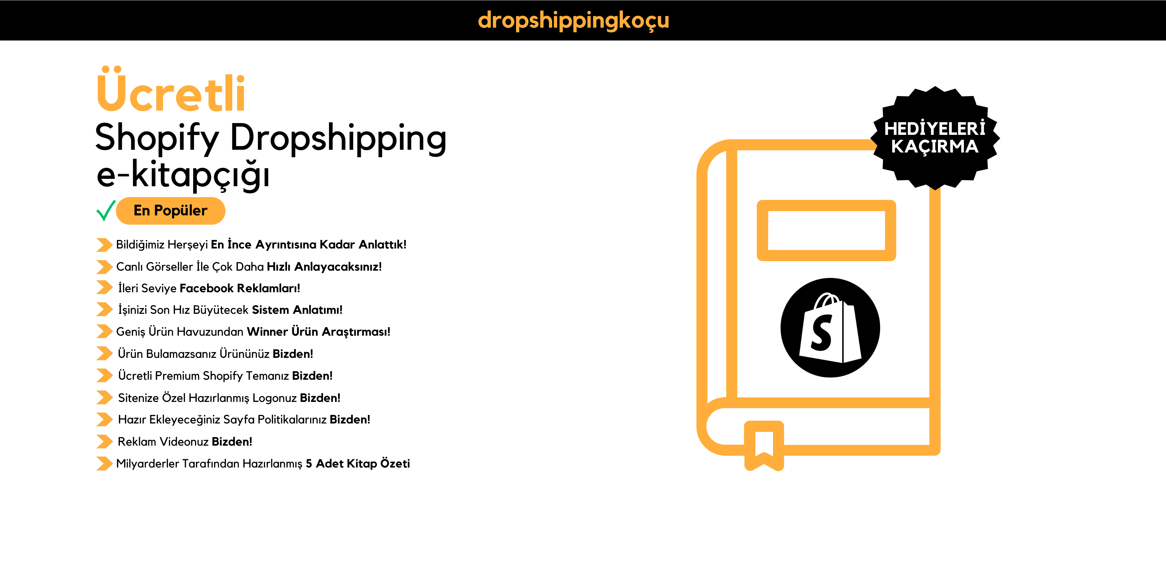 Ücretli Shopify Dropshipping E-Kitapçığı alan herkese bu hediyeler bizler tarafından verilecektir.